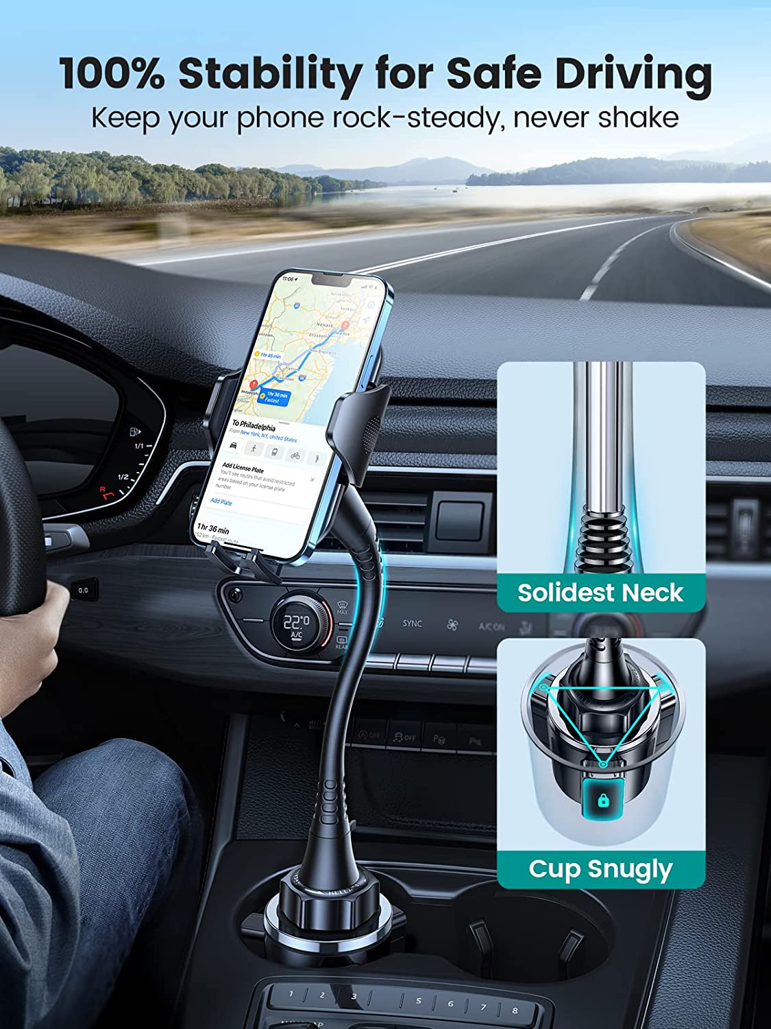 [Universal for Your Phones & Cars] & [Perfect Protection] & [Fit Your Height & Lifetime-use Cup Phone Holder] & [Easiest to Install and Use] & [Free Your Hands=Drive Safer]